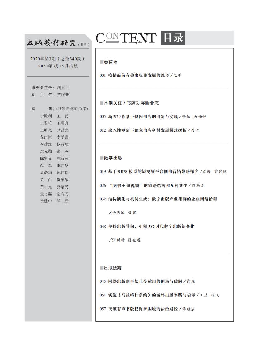 《出版发行研究》2020年第3期目录