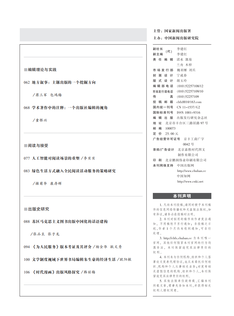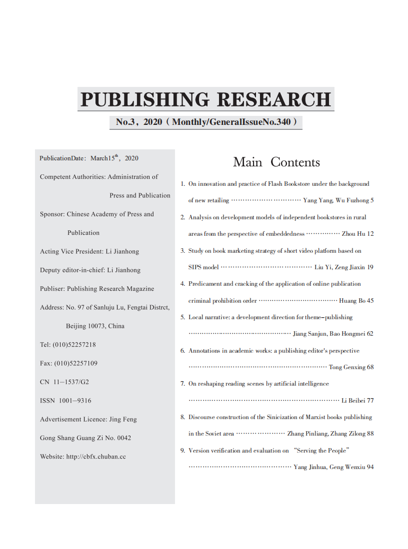 《出版发行研究》2020年第3期目录