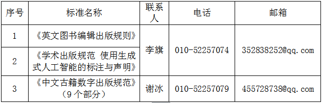 如有意见或建议,请于2025年12月20日前以电子邮件等方式将意见反馈至出版标委会秘书处联系人: